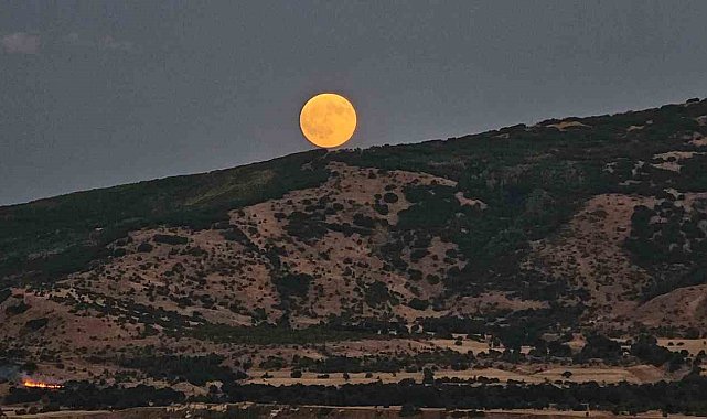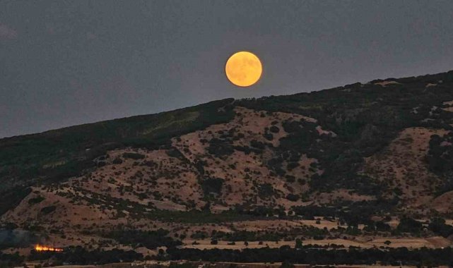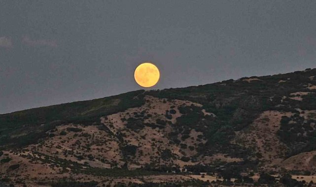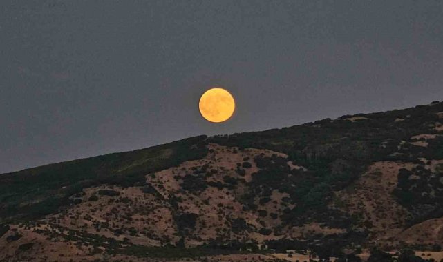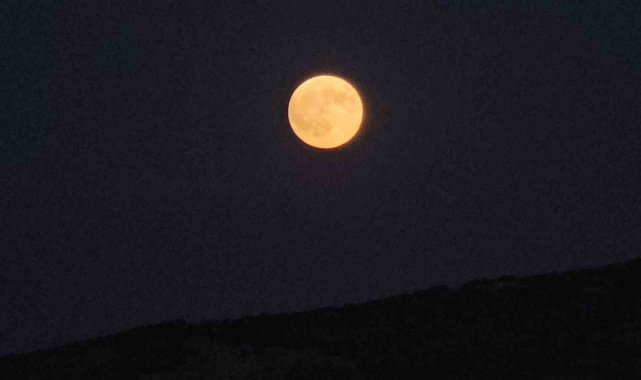 Van Gölü'nün sularına yansıyan devasa Ay, dağların ardından yükseldikçe önce kızıl renge büründü. Bir süre yarım ay şeklini alan ay, daha sonra tamamen kızıl tonlarına dönerek görsel bir şölen sundu.