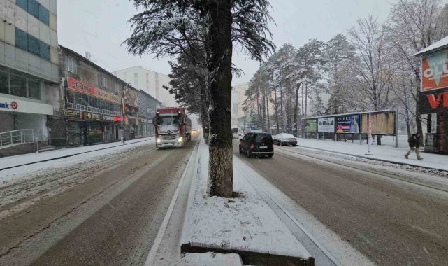 Bitlis'in Tatvan ilçesinde gece saatlerinde etkili olmaya başlayan kar yağışı ilçeyi beyaza bürüdü.