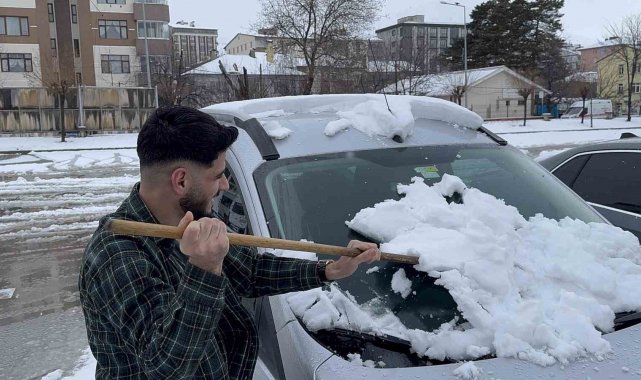 Bitlis'in Tatvan ilçesinde gece saatlerinde başlayan kar yağışı hayatı olumsuz etkiledi.