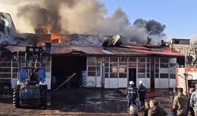 Bitlis'in Tatvan ilçesindeki sanayi sitesindeki bir kereste dükkanında çıkan yangın korkuttu.