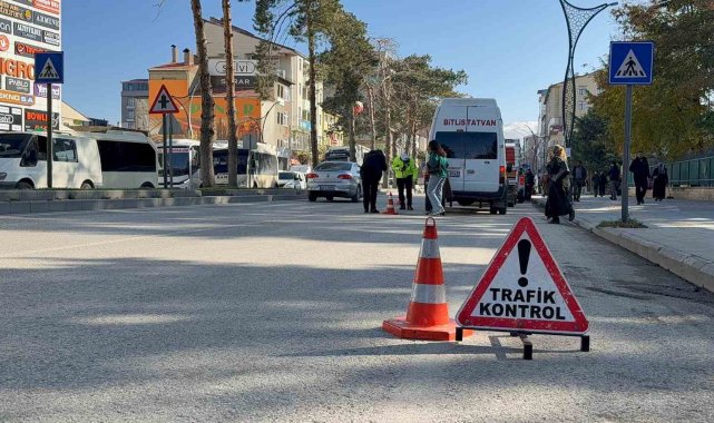 Bitlis'in Tatvan ilçesinde emniyet ekiplerince kış lastiği denetimi yapıldı.