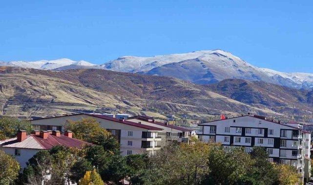 Bitlis'in Tatvan ilçesinin yüksek kesimleri yağan karla beyaza büründü.