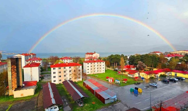 Bitlis'in Tatvan ilçesinde etkili olan yağmurun ardından gökyüzünde muhteşem bir gökkuşağı manzarası oluştu.