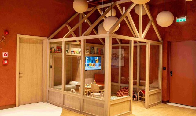 Sofya Havalimanı'ndaki lounge, misafirlerin sosyal, üretken ve dinlenme ihtiyaçları arasında akıcı geçiş yapabildiği hibrit bir ortam olarak tasarlandı. Bar ve yaşam alanı, yeme-içme bölümü, çalışma alanları, çocuk alanı, dinlenme odası ve terasla çok katmanlı bir deneyim sunuyor.