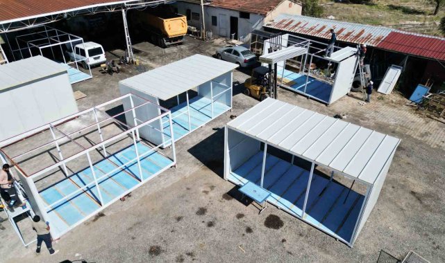 Tavas Belediyesi konteyner ve otobüs duraklarını kendisi üretiyor