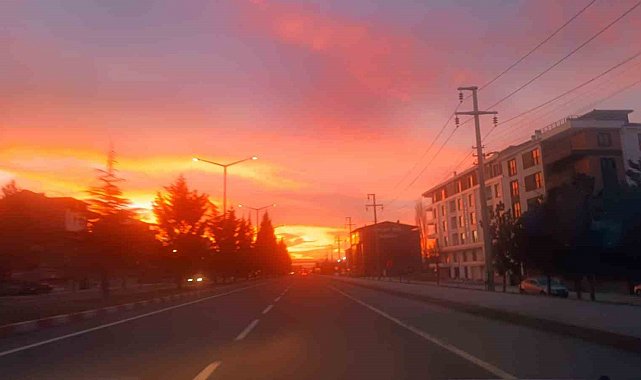 Doğadaki bu eşsiz görsel şölen, birçok kişi tarafından fotoğraflandı ve sosyal medyada paylaşıldı. Kızıl şafak olarak adlandırılan bu olay, güneşin doğuşu sırasında atmosferdeki parçacıkların güneş ışığını farklı renklerde kırılmasıyla oluşuyor.