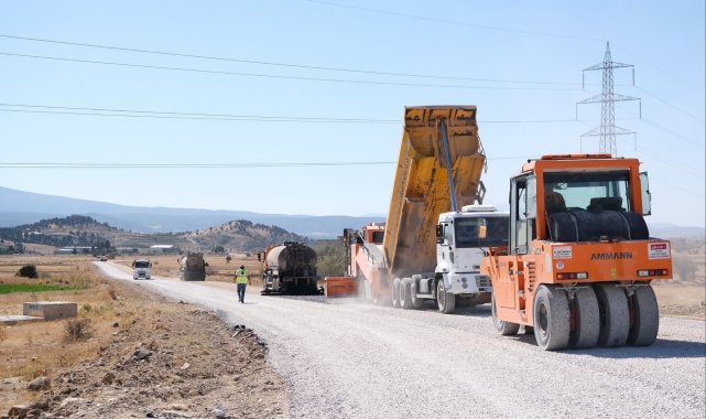 Kütahya'nın Tavşanlı ilçesinde Cezaevi ve Çukurköy Sanayi arasındaki 3,2 kilometrelik yola Karayolları ve Tavşanlı Belediyesi tarafından asfalt dökülüyor.
