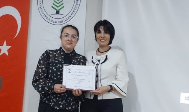 Söyleşi sonrası Dekan yardımcısı Doç. Dr. Aslı Boru İpek tarafından Öznur Kırman'a katılım ve katkılarından dolayı teşekkür belgesi ve hediye takdim edildi.