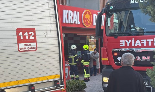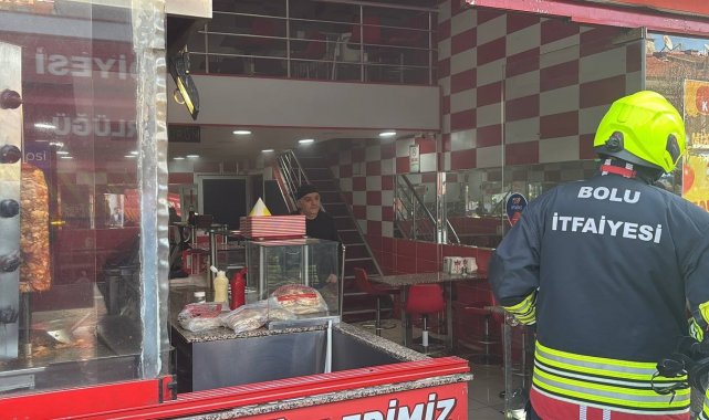 Bolu'da tavuk döner dükkanında çıkan yangın personel tarafından söndürülürken, itfaiye ekipleri duman tahliyesi yaptı.