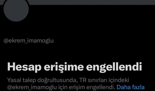 TAYDER avukatı Burak Bekiroğlu tarafından 1 Nisan'da yapılan başvuru sonucunda mahkeme Ekrem İmamoğlu'nun X hesabına erişim engeli getirdi. Hesabın, milli güvenlik ve kamu düzeninin korunması gerekçesiyle kapatıldığı öğrenildi.