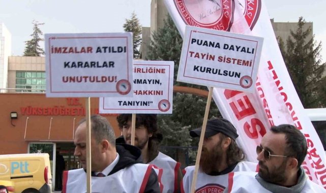 Üniversite İdari Personel Sendikası (ÜNİPERSEN) üyeleri, Yükseköğretim Kurulu (YÖK) önünde yaptıkları eylemle tayin hakkı istedi.