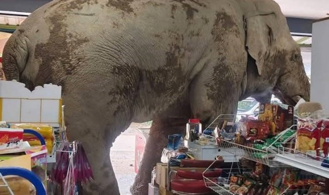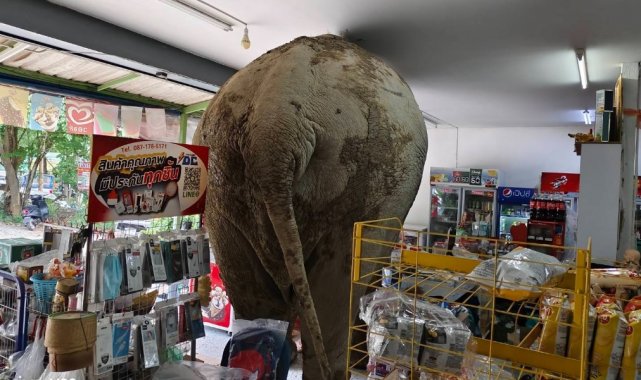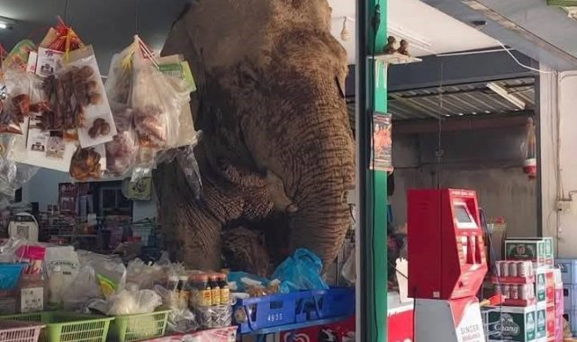 Vahşi fil nüfusunun 3 bin-3 bin 500 arasında olduğu tahmin edilen Tayland'da sürüler halinde dolaşan filler zaman zaman tarlalara ve yerleşim alanlarındaki bahçelere girerek yiyecek arıyor. Ancak bir filin tek başına gündüz saatlerinde yerleşim bölgesine inerek bir markete girmesi, bölgede nadir rastlanan bir durum olarak kayıtlara geçti.