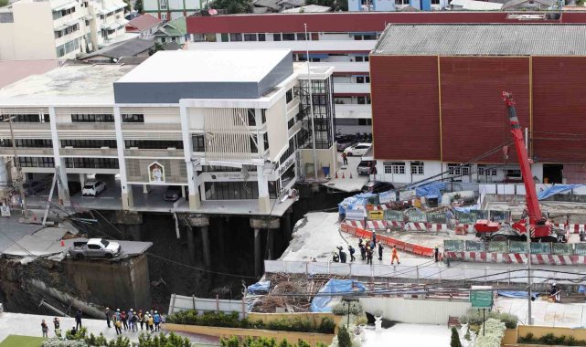 Tayland'ın başkenti Bangkok'un merkezindeki bir yolun çökmesi sonucu yaklaşık 50 metre derinliğinde dev bir çukur oluştu. Bir araç çukura düşerken, yol üzerindeki hastane ve polis merkezi tahliye edildi.