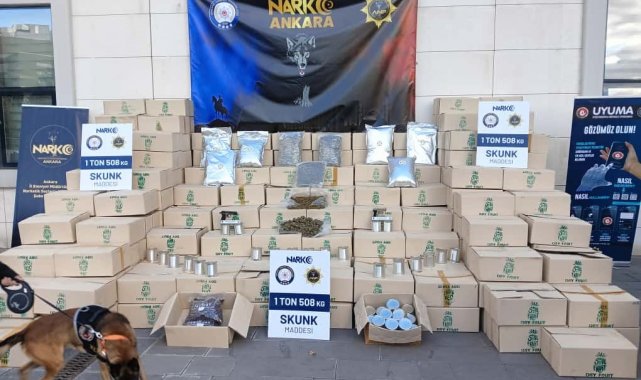 Ankara merkezli 4 ilde düzenlenen operasyonda, Tayland'dan Türkiye'ye getirilen 1 milyar lira değerinde 1 ton 508 kilogram skunk maddesi ele geçirildi. Uyuşturucunun Çin, İspanya, İsrail ve Mısır rotaları üzerinden Türkiye'ye getirildiği belirlendi.