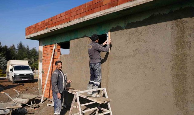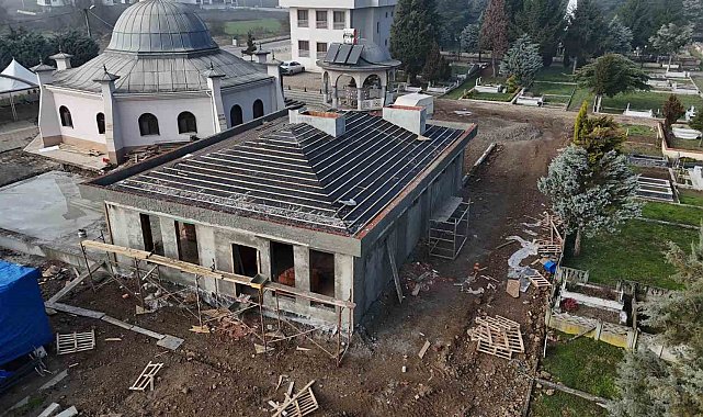 DÜZCE (İHA) – Düzce'de şehir mezarlığı mevkiinde yapımı devam eden taziye evinde çalışmalar sürüyor.