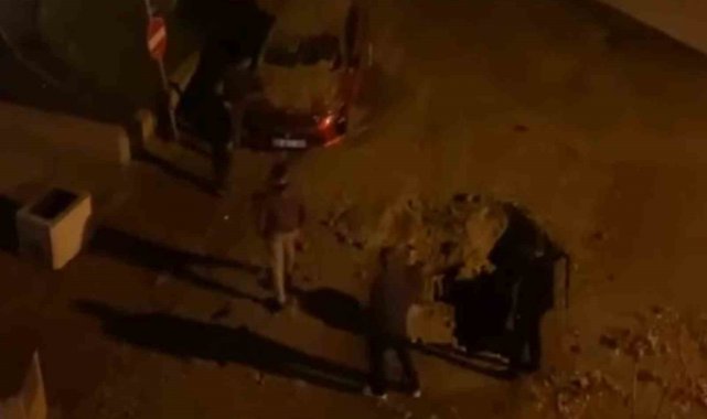 Aksaray'da içme suyu şebekesi hattındaki yüksek basınçlı su, asfaltı patlatarak fışkırdı. 2 aracın hasar gördüğü o anlar güvenlik kamerasına yansıdı.