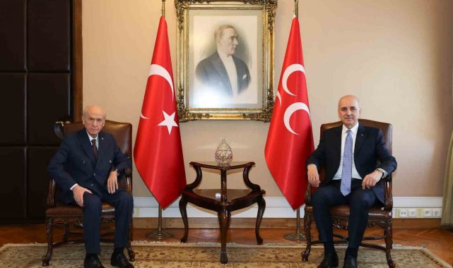 TBMM Başkanı Numan Kurtulmuş, MHP Genel Başkanı Devlet Bahçeli'yi Meclis'teki makamında ziyaret etti. Bahçeli, Kurtulmuş'u kapıda karşıladı. Basına kapalı gerçekleşen görüşmede Bahçeli'ye Meclis Başkanvekili Celal Adan, Grup Başkanvekilleri Erkan Akçay ve Filiz Kılıç eşlik etti. Yaklaşık 45 dakika süren görüşmenin ardından basın toplantısı düzenleyen Kurtulmuş, 'terörsüz Türkiye' adı verilen süreç hakkında karşılıklı fikir alışverişinde bulunduklarını ifade ederek, "Bundan sonra sürecin nasıl işleyeceğine ilişkin fikir alışverişinde bulunduk. Özellikle İmralı'nın açıklaması, ardından terör örgütünün de bu açıklamaya uyacağını ve silah bırakmayı kabul etmesiyle Türkiye'de yeni bir süreç başlamıştır. Bu sürecin açık bir şeklide milletimizin gözü önünde ve planlanan bir şekilde sonuca ulaşabilmesi için bundan sonra TBMM'ye görev düşmektedir. TBMM'de bütün siyasi partilerin temsil edildiği bir komisyon oluşturularak, sürecin takibi, kontrolü ve öncülük edilmesi gerekecek. Bu sürecin ilerlemesi yönünde fikirlerimizi paylaştık. Ümit ediyorum ki önümüzdeki sürecin de TBMM'nin bu tarihi sorumluluğu yerine getirerek en güzel sonuçlandırması nasip olsun. Dünya siyasetinin büyük değişimler yaşadığı hem de bölge siyasetinin baştan aşağı şekillendiği bu dönemde Türkiye'nin önüne tarihi bir fırsat geçmiştir. Bu fırsat siyaset üstü bir sorumluluk gerektirmektedir. Bu süreç herhangi bir siyasi partinin ortaya koyabileceği tek başına gerçekleştirebileceği bir siyasi süreç değildir. Bu bir al ver meselesi de değildir. Gönüllü bir şekilde birlik beraberlik sürecinin tesis edilmesidir. Bunun için ümit ediyorum ki herkes sorumlu bir şekilde elini taşın altına koyarak üzerine düşen sorumlulukları yerine getirir. TBMM'nin kontrolünde ve müzakere ortamında bu konu tamamı ile gerçekleşmiş olur" ifadelerini kullandı.