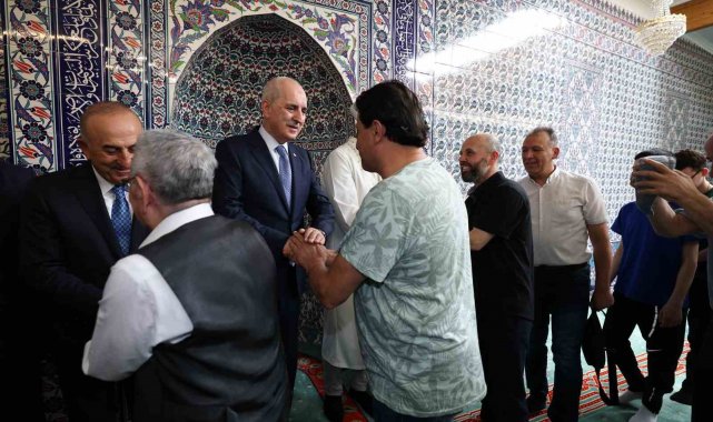 TBMM Başkanı Kurtulmuş, daha sonra Brüksel Fatih Camii'ne geçerek burada cuma namazını kıldı. Namaz sonrası cami cemaatiyle bir araya gelen Kurtulmuş, Belçika'daki Türk vatandaşlarıyla sohbet ederek talep ve görüşlerini dinledi.