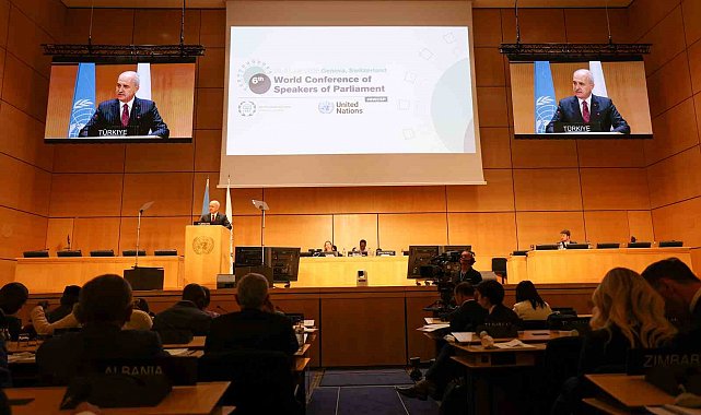 TBMM Başkanı Numan Kurtulmuş, İsviçre'de Parlamentolar Arası Birlik (PAB) tarafından Birleşmiş Milletler (BM) Cenevre Ofisi'nde düzenlenen Altıncı Dünya Parlamento Başkanları Konferansı'na katıldı. Kurtulmuş, konferansın açılışında yaptığı konuşmada, çok taraflılığın ve barış inşasının sembolü olan bu mekanın, küresel iş birliğine yüzyıllık bir bağlılığı temsil ettiğini vurgulayarak, "Ukrayna'dan Gazze'ye, iklim değişikliğinden derinleşen eşitsizliklere, ayrımcılık ve nefretin artışından düzensiz göçe kadar çatışmalar ve küresel zorluklarla dolu, giderek daha çalkantılı bir dönemden geçiyoruz. Bugün boğuştuğumuz zorluklar, kurumlarımızı şekillendiren geçmişteki zorluklardan daha önemsiz değildir" dedi.