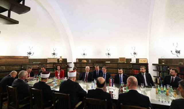 TBMM Başkanı Numan Kurtulmuş, Üç Deniz Girişimi Parlamenter Zirvesi nedeniyle bulunduğu Hırvatistan'da temaslarını sürdürüyor. Kurtulmuş, başkent Zagreb'deki Zagreb Camii ve İslam Merkezi'ni ziyaret etti. Merkeze gelişinde Hırvatistan İslam Birliği Meşihatı Başkanı Müftü Aziz Hasanovic tarafından karşılanan Kurtulmuş, merkez hakkında bilgi alarak, görevlilere sohbet etti. TBMM Başkanı Kurtulmuş, daha sonra Diyanet İşleri Başkanlığı, Yunus Emre Enstitüsü ve Türkiye'nin Zagreb Büyükelçiliği tarafından merkezde düzenlenen "Ayasofya" temalı serginin açılışını gerçekleştirdi. Açılışa Kurtulmuş'un yanı sıra Hırvatistan Meclis Başkanı Jandrokovic, Hırvatistan İslam Birliği Meşihatı Başkanı Müftü Hasanovic, Türkiye-Hırvatistan Parlamentolar Arası Dostluk Grubu Başkanı ve AK Parti Amasya Milletvekili Hasan Çilez, AK Parti Çanakkale Milletvekili Ayhan Gider, CHP Ankara Milletvekili Deniz Demir, MHP Antalya Milletvekili Abdurrahman Başkan ve Türkiye'nin Zagreb Büyükelçisi Nurdan Erpulat Altuntaş katıldı.