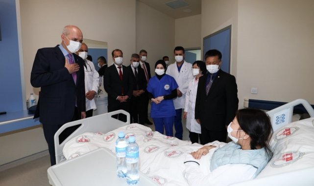 Kurtulmuş'a, hastane başhekimi Özden Vezir ve TİKA Bişkek Program Koordinatörü Mehmet Bodur tarafından hastanedeki kullanılan yeni üniteler gösterildi ve odalar gezdirildi. TBMM Başkanı Kurtulmuş, hastanede tedavi görenleri ziyareti sırasında da babasından böbrek nakli yapılan Asılay Omuraliyeva'ya geçmiş olsun dileğinde bulundu. Kurtulmuş, baba Sağın Omüraliyev ve kızına acil şifalar diledi.