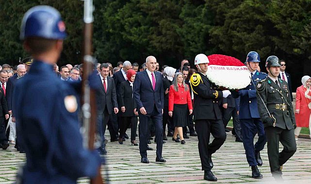 TBMM Başkanı Numan Kurtulmuş başkanlığında devlet erkanlarından oluşan heyet, Aslanlı Yol'dan yürüyerek Mustafa Kemal Atatürk'ün mozolesine geldi. Kurtulmuş'un mozoleye çelenk bırakmasının ardından saygı duruşunda bulunuldu ve İstiklal Marşı okundu. Daha sonra Misak-ı Milli Kulesi'ne geçen Kurtulmuş, Anıtkabir Özel Defteri'ne şunları yazdı: