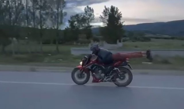 Tokat-Turhal karayolunda bir motosiklet sürücüsünün canını hiçe sayarak yaptığı tehlikeli hareketler cep telefonu kamerasına yansıdı. Kaydedilen görüntülerde 60 AGU 073 plakalı kırmızı bir motosikletin üzerinde yüzüstü yatar pozisyonda seyreden sürücü hem kendi hayatını hem de trafikteki diğer sürücülerin güvenliğini tehlikeye attı. Sürücünün kask takmasına rağmen, motosiklet üzerinde yaptığı bu akrobatik hareket sosyal medyada da tepki topladı. Bir süre bu şekilde ilerleyen sürücü daha sonra gözden kayboldu.