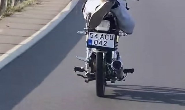 D-650 karayolunun Adapazarı-Karasu kesiminde 54 ACU 042 plakalı motosikletin üzerine yatarak kilometrelerce o şekilde ilerleyen sürücü, hem kendi canını hem de trafikteki diğer sürücülerin hayatını tehlikeye attı. O anlar, bir otomobilde yolcu olarak bulunan kadın tarafından saniye saniye kaydedildi. Kadın videoda, "Ne yapıyor bu. Görüntüsünü çekiyorum. Bu kişiye adam akıllı ceza kesilsin de aklı başına gelsin. Kendileri geberiyor, diğer sürücülerin başını da yakıyorlar" sözleriyle tepki gösterdi.