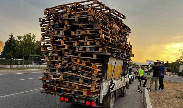 Bursa'nın İnegöl ilçesinde tehlikeli şekilde yük taşıyan kamyonetin sürücüsüne ceza yağdı.