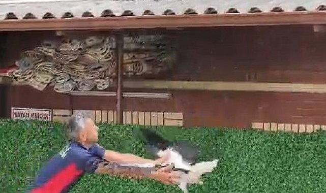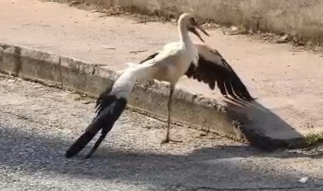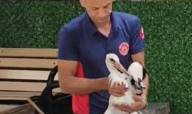 Tek ayaklı leyleği havada yakaladı, itfaiye erinin refleksi leyleğin hayatını kurtardı