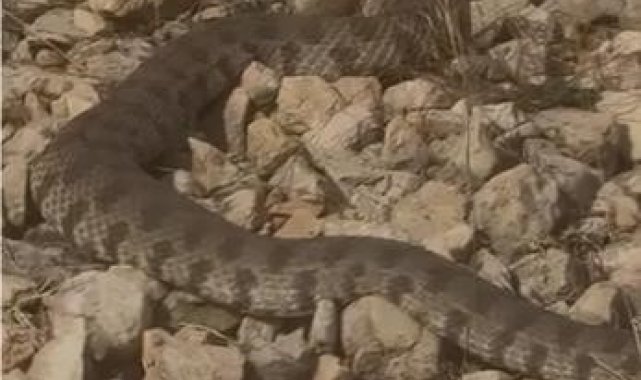 Elazığ merkeze bağlı Kalkantepe köyünde koca engerek yılanı görüntülendi. Engerek yılanını görüntüleyen kişinin rahat tavrı ve konuşmaları ise dikkat çekti. Kısa bir süre yılanı inceleyen vatandaş daha sonra yılandan uzaklaşırken, engerek ise gözden kayboldu.