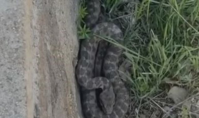 Elazığ'ın Keban ilçesine bağlı Altıyaka köyünde koca engerek yılanı görüntülendi. Engerek yılanını görüntüleyen kişinin rahat tavrı ve konuşmaları ise dikkat çekti. Vatandaş, bir süre incelediği hayvan için yanındaki arkadaşına, ''Valla akrabalarımdan birini buldum burada'' diye espri yaptı.