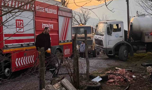 Düzce'nin Gölyaka ilçesinde tek katlı bir ev çıkan yangında kullanılmaz hale geldi.