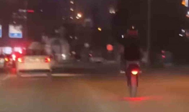 Bursa'nın Nilüfer ilçesi Beşevler mevkii İzmir-Ankara yolu üzerinde ilerleyen bir motosiklet sürücü tek teker yaprak metrelerce ilerledi. Kazaya davetiye çıkaran sürücü kameraya yansırken, sürücünün duyarsız hareketleri diğer sürücülerinde dikkatini çekti. Sürücünün ne kendi ne de başkalarını düşünerek ilerlediği o anlar cep telefonu kamerasıyla kayda alındı.