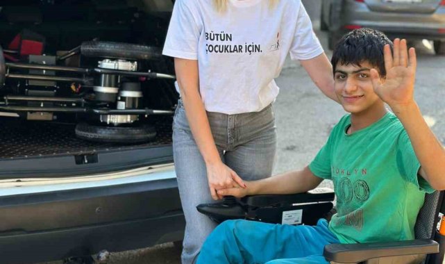Adana'da tekerlekli sandalyesi çalınan ve sokaklarda emekleyerek gezen 15 yaşındaki Enes'e akülü tekerlekli sandalye hediye edildi.