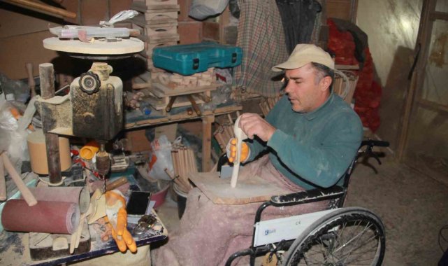 Geçirdiği trafik kazası sonrası 2 yıl tedavi gördüğünü ancak belden aşağısının felçli kaldığını belirten Ahmet Çiçek (50), bu süreçte ahşaba merak saldığını söyledi. Şimşir ve gürgen ağaçlarından kaşık, merdane, oklava ve masa yaptığını kaydeden Çiçek, bu ürünlerin satışını da kendisinin yaptığını belirterek, "Burada kendime ufak bir atölye kurdum, kendi çapımda çalışıyorum. Burada hem zaman geçiriyorum, hem de stresimi atıyorum. Evde durmak yerine burada hem üretiyorum, hem de zaman geçiriyorum. Bu şekilde 23 yıldır hayatıma devam ediyorum" dedi.