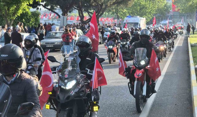 Motosikletlilerden bayraklı kortej