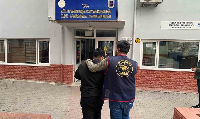 Süleymanpaşa ilçesi Bahçelievler Mahallesi'nde, Süleymanpaşa İlçe Jandarma Komutanlığı ve JASAT ekipleri tarafından aranan şahısların yakalanmasına yönelik 28 Şubat 2025 tarihinde yapılan araştırmalar kapsamında B.E. isimli kişinin "Binanın Eklentileri İçinde Muhafaza Altına Alınmış Eşya Hakkında Hırsızlık" suçundan arandığı tespit edildi. Hakkında 30 yıl 6 ay 10 gün hapis cezası bulunan B.E., ekipler tarafından yakalanarak gözaltına alındı. İşlemlerinin ardından adliyeye sevk edilen şahıs, tutuklanarak cezaevine gönderildi.
