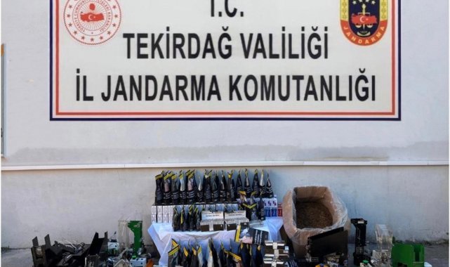 Tekirdağ İl Jandarma Komutanlığı ekipleri tarafından Çorlu ve Süleymanpaşa ilçelerinde düzenlenen operasyonlarda izinsiz ticari amaçla üretilen ve bulundurulan alkol ile kaçak tütün ürünleri ele geçirildi. Çorlu Yenice Mahallesi'nde M.M.'nin aracında yapılan aramada, piyasa değeri 1 milyon 250 bin TL olan 5 bin litre etil alkol bulundu. Süleymanpaşa ilçesi Ortacamii Mahallesi'nde S.K.'nın ikametinde yapılan operasyonda ise 20 bin 360 adet makaron, 5 bin 240 adet içi tütünle doldurulmuş makaron, 7 tam otomatik sigara sarma makinesi ve 17 kilogram tütün ele geçirildi.