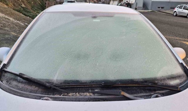 Tekirdağ'ın Süleymanpaşa ilçesinde hava sıcaklığının sıfırın altına düşmesiyle birlikte sabah saatlerinde araçların üzerinde kırağı oluştu.