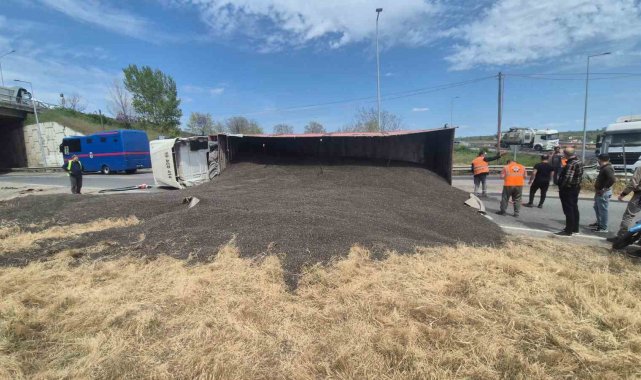 Devrilen tırdan yola saçılan tonlarca ayçiçeği çekirdeği nedeniyle yol ulaşıma kapanma noktasına geldi. Trafik polisinin müdahalesiyle araç geçişleri bir süre tek şeritten kontrollü olarak sağlandı. Kazayı sürücü yara almadan atlatırken, devrilen tırın kaldırılması için bölgede çalışma başlatıldı.