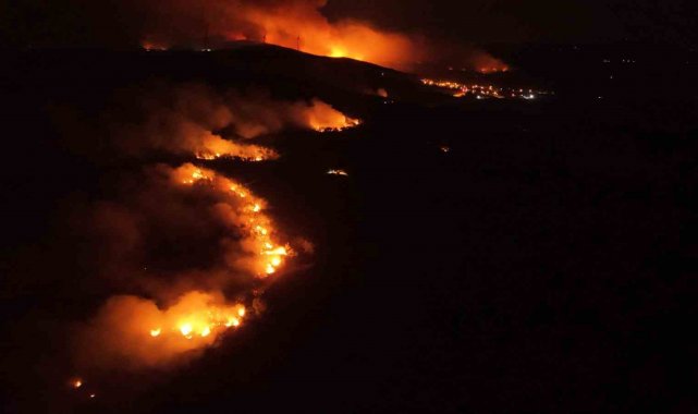 Şarköy ilçesi kırsalında başlayıp 13 saattir süren orman yangınları devam ediyor. Köyün yanı başındaki yangınlar köy hanelerini tehdit etmeye devam ediyor. Yangına Tekirdağ başta olmak üzere birçok çevre ilden de destek geldi. Köy sakinleri de traktörleri ile yangına su taşımaya devam ediyor.