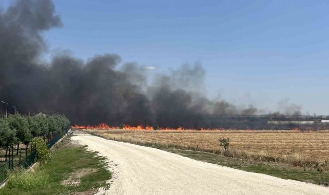 İtfaiye ekipleri ve çiftçilerin de traktörlerle yardım ettiği yangın, yaklaşık iki saat süren yoğun çabanın ardından kontrol altına alındı.