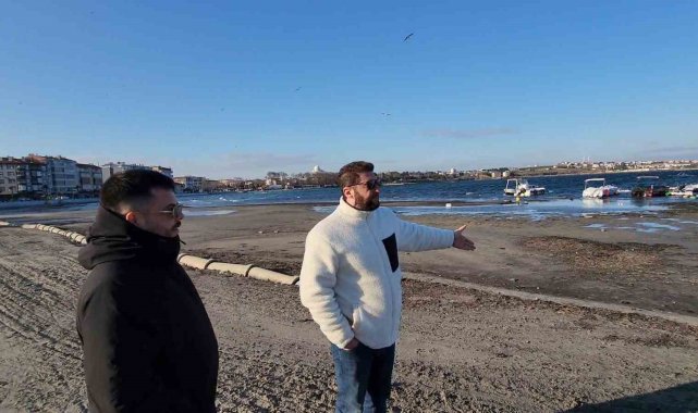 Tekirdağ'ın Marmaraereğlisi ilçesinde deniz seviyesindeki düşüş nedeniyle kıyı hattında gözle görülür bir çekilme yaşandı.
