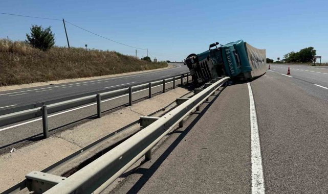 Tekirdağ'ın Malkara yolu üzerinde devrilen tırdan refüje savrulan sürücü yaralandı.