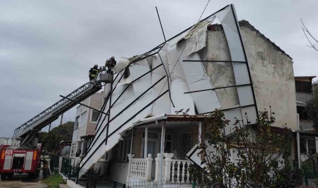 Tekirdağ'da fırtına çatıları uçurdu