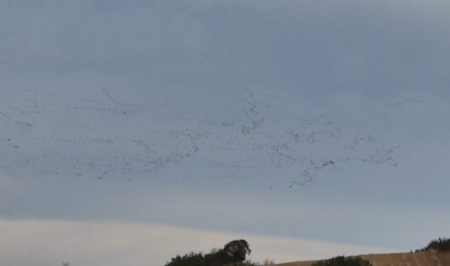 Tekirdağ'ın Süleymanpaşa semalarında sabah saatlerinde yüzlerce leyleğin toplu uçuşu gözlendi, gökyüzü adeta kanatlarla kaplandı.