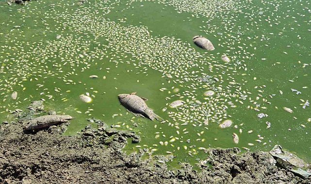 Tekirdağ'ın Süleymanpaşa ilçesine bağlı Yağcı Mahallesi'nde Çakıl Göleti tamamen kurudu, göletteki balıklar susuzluktan öldü.