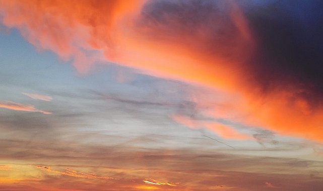 Tekirdağ'ın Muratlı ilçesinde Balabanlı Mahallesi'nde akşam saatlerinde ortaya çıkan renk şöleni, gökyüzünü izleyenlere görsel bir ziyafet sundu. Turuncu, pembe ve mor tonlarının hâkim olduğu etkileyici gün batımı, sosyal medyada da büyük ilgi gördü.