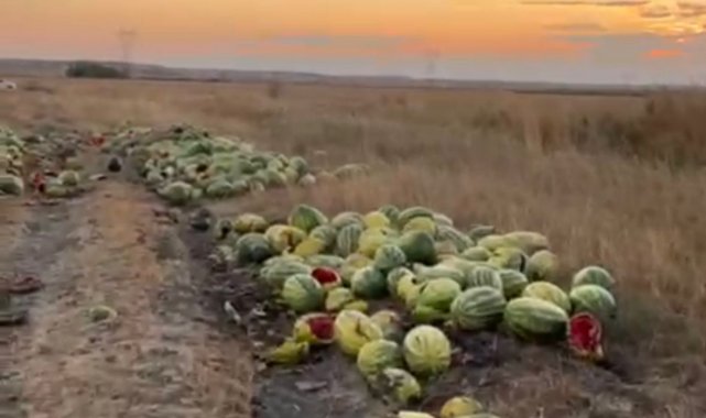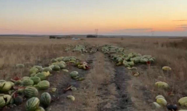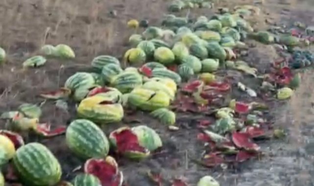 Tekirdağ'da israf tepkisi: Karpuzlar yola saçıldı